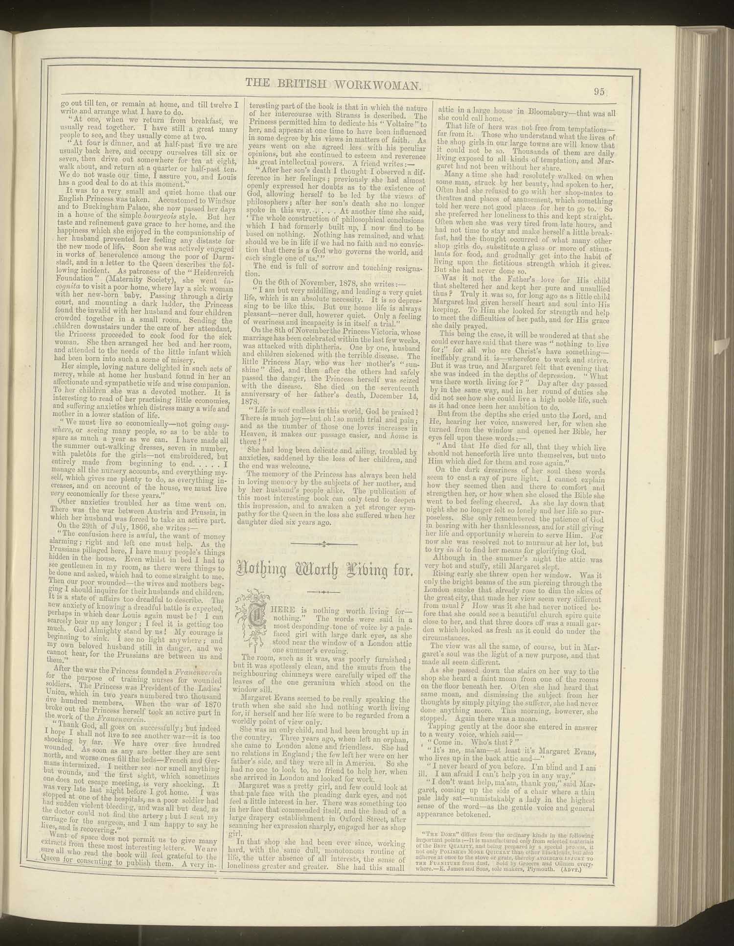 a response to “Nothing Worth Living For,” British Workwoman, no 252, p. 95