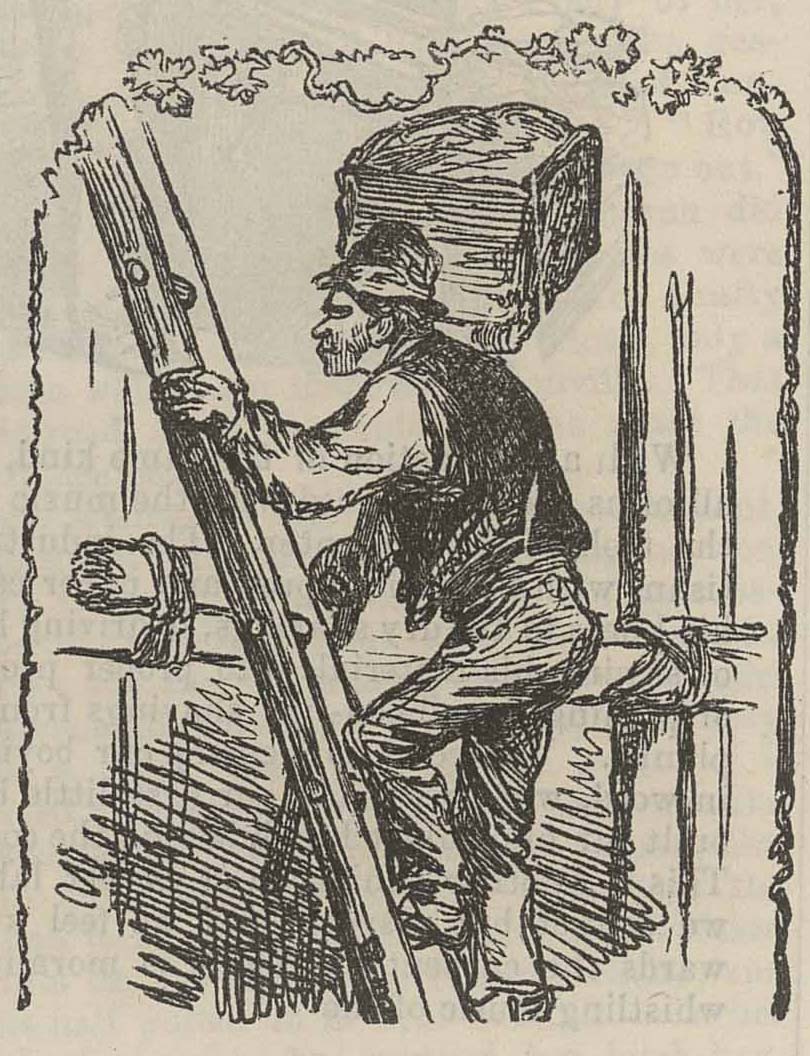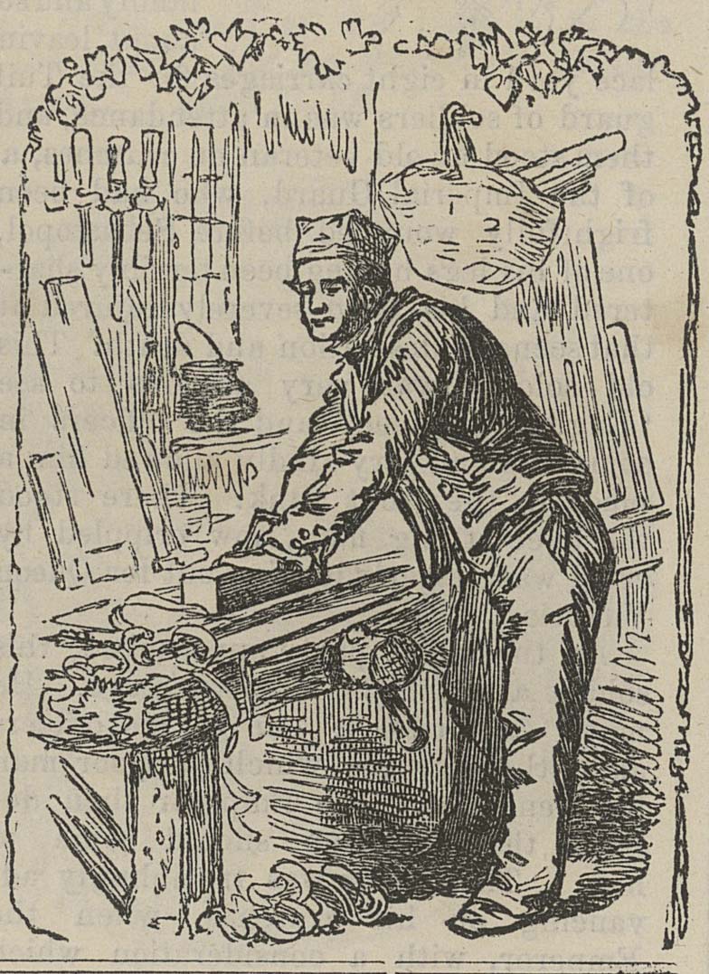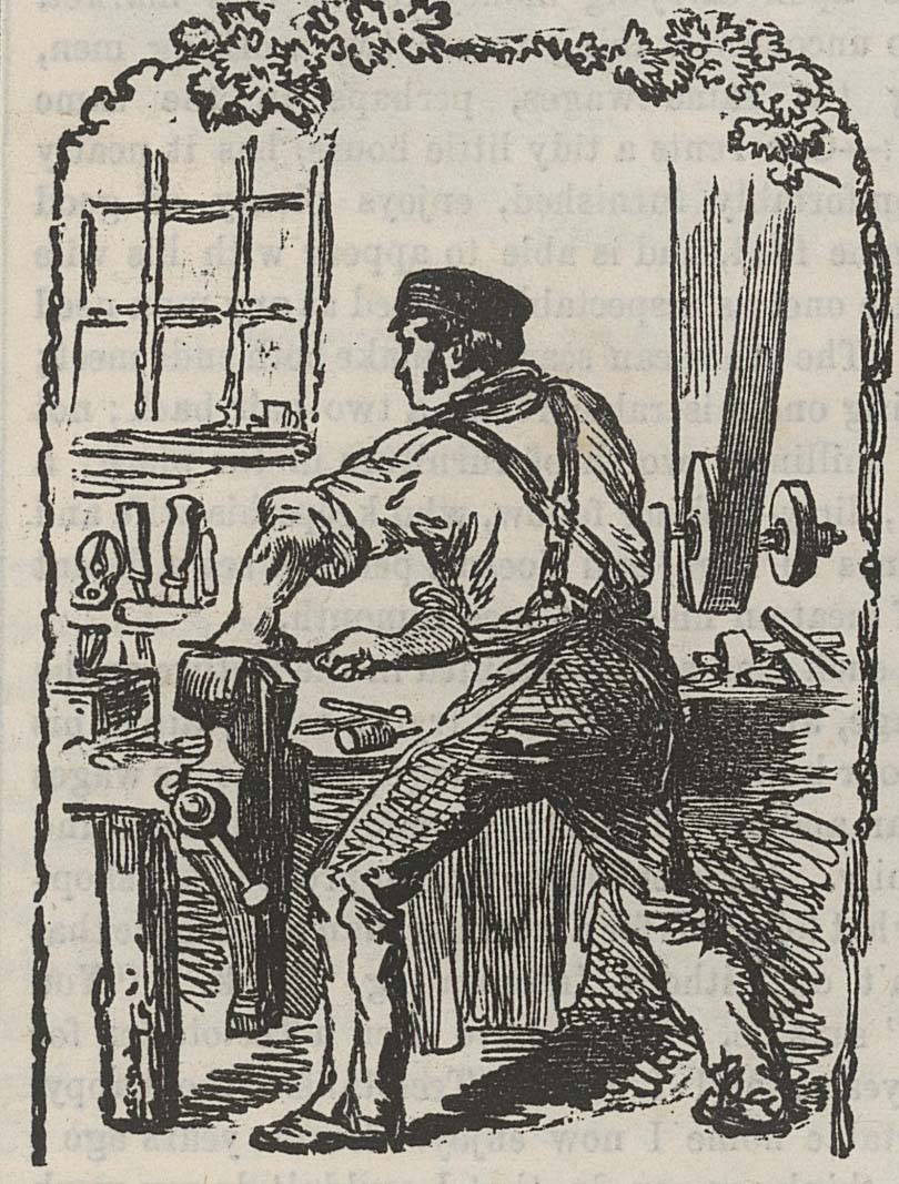 The images to the right and left of the central British Workman masthead changed each month in the first twenty-six issues. The images below are taken from issues 1-21 (1855-1856). Some illustrations were used more than once. Occasionally, text was used in the place of an illustration. Can you identify all of the trades, crafts, and businesses that are pictured?