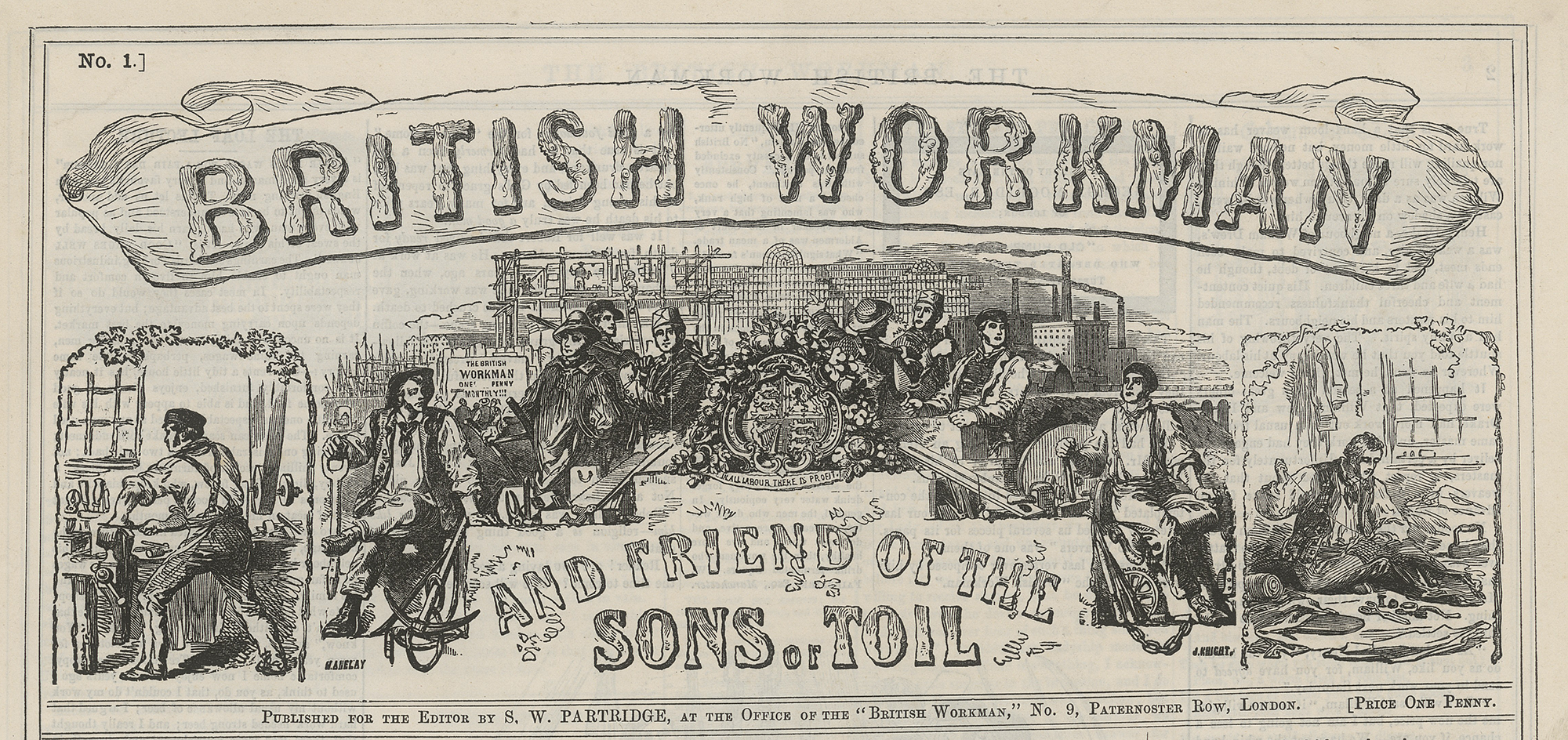 Masthead detail, “British Workman” No. 1, page 1 (illustration by Henry Anelay)